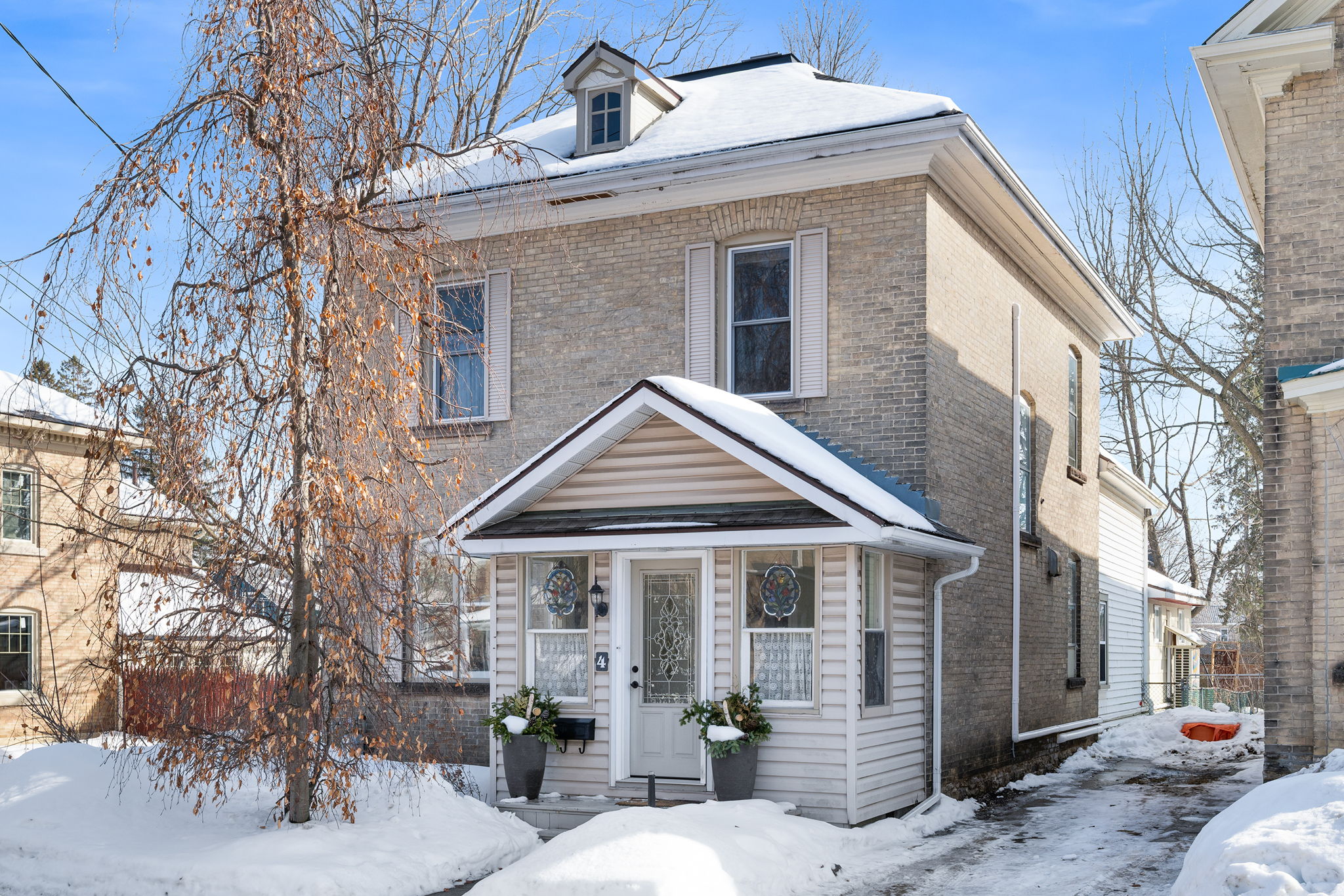 Classic yellow brick beauty within easy walking distance to downtown Perth. 3 bedrooms in the main part of the house with renvovated bathroom and kitchen. At the back part of the house is the addition with a newer main floor 3 piece bathroom, large family room with gas fireplace plus second floor 4th bedroom and 3 piece bath that is perfect for guests. Beautiful enclosed porch front entry and handy door through side porch from carport to mudroom/laundry area. Private backyard with minimal work for your relaxation and enjoyment. The boiler system was updated in 2021 and heat pump added for heat and cooling in 2023. Previous owner updated: Electrical 2001, foundation 2004, roof 2008, flat roof 2017, most windows 2010, plumbing 2010, carport 2017. Utility Costs - March 2024 to end of Feb 2025 - Hydro - $1622; Gas - $1446. Water Sewer about $1560 annually. Full cellar basement under the main part of the house and crawl space under the addition. Gorgeous!